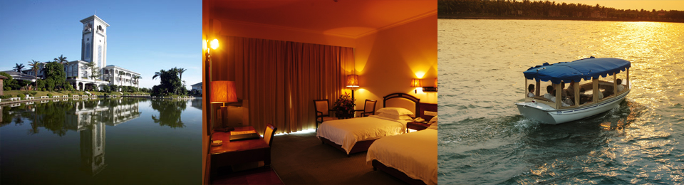 海南麗湖銀灣大酒店擁有各類客房 402 間 ( 套 ) ,會(huì)議室 8 個(gè),可容納 1800 人開會(huì),餐廳有中餐廳、西餐廳、宴會(huì)廳、多功能廳、 燒烤園、火鍋亭等,可接待 2000 人同時(shí)就餐?;ㄏ勺?SPA 、歌舞廳、酒吧、茶座、球館、娛樂中心、觀光游艇、釣魚臺(tái)、漁家樂、高爾夫球場(chǎng)等配套設(shè)施齊全,是休閑、度假、會(huì)議型酒店。 海南麗湖銀灣大酒店—— 集綠色、碧水、空氣、陽(yáng)光、島嶼于一體,讓您面水臨風(fēng),呼清納爽、身融大自然;別具一格的水上客房更讓您可坐擁無限風(fēng)景,盡享垂釣之娛!